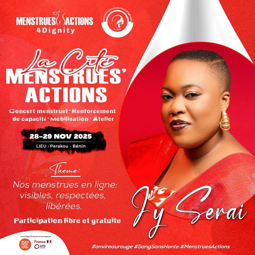 Après la SEDIM à Cotonou, la FJAD revient cette fois-ci avec la Cité Menstrues’actions qui se tiendra à Parakou du 28 au 29 novembre 2025. Ce rendez-vous inédit est dédié à la sensibilisation, à l’éducation et à la mobilisation communautaire autour de la dignité menstruelle. La Cité rassemblera professionnel·le·s de la santé, activistes, artistes, organisations et communautés afin de faire avancer une cause essentielle : permettre à chaque personne menstruée de vivre ses menstrues dans le respect, la dignité et sans stigmatisation.